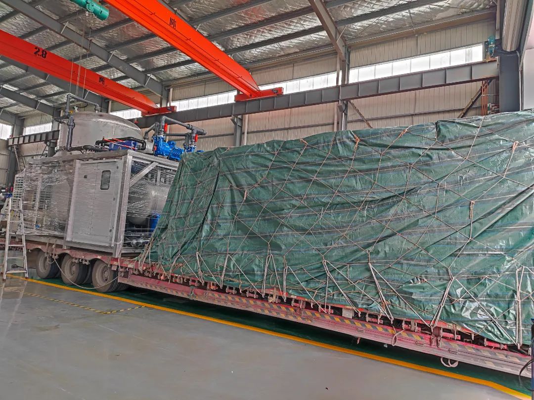 7月13日,朗盼環境完成了四月中標中鈔的項目:1臺20噸/天低溫熱泵真空蒸發器+1臺3噸/天的低溫熱泵真空結晶器,并裝車發往成都,以及太倉客戶的1臺10噸/天低溫熱泵真空蒸發器,順利完成項目交付。