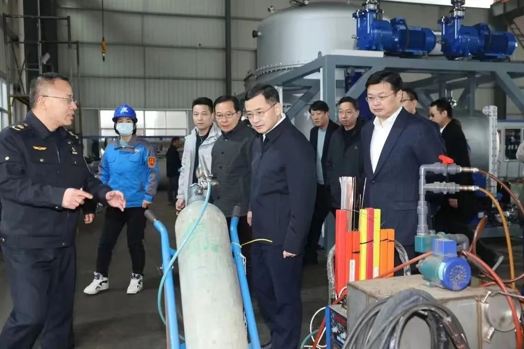 為進一步加強和促進朗盼環境的安全生產和消防工作,確保元旦假期間的車間安全生產形式穩定、保障節后安全生產平穩有序。12月30日,無錫市濱湖區區委書記孫海東、區長李平一行蒞臨朗盼環境進行了全面的安全檢查,并查看了解了我司自主研發的環保設備-低溫熱泵真空蒸發器。由我司董事長鮑偉東、總經理鮑天鈺、鮑天鈞及車間安全生產管理員進行接待講解。