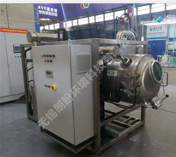 低溫熱熱泵結晶器是一個可以將將物料加熱,使物料中的水分徹底蒸發,水蒸氣上升后再進行冷卻形成冷凝水的過程,冷凝水達標排放或者回用,濃縮物以含水量極低的高濃度液體或者固體(干粉或晶體)的形式作為危廢處置,對危廢減量及物料回收有著十分重要的意義。