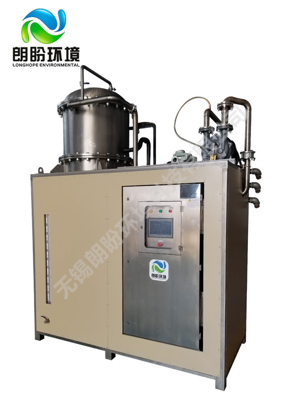 • 低溫蒸發(fā)結(jié)晶器的原理是物料的沸點(diǎn)隨著壓強(qiáng)的降低而降低。低溫節(jié)能濃縮設(shè)備整體保持真空狀態(tài),蒸發(fā)室的真空度約為95%~97%,在此壓強(qiáng)下水的沸點(diǎn)為35℃~37℃,系統(tǒng)無(wú)需配備進(jìn)料泵,利用蒸發(fā)室的負(fù)壓將物料吸進(jìn)蒸發(fā)室,通過(guò)強(qiáng)制循環(huán)方式將物料循環(huán)霧化,傳輸至換熱器上,物料中水分被蒸發(fā),物料連續(xù)循環(huán)霧化,通過(guò)蒸發(fā)室液位自動(dòng)補(bǔ)料,濃度達(dá)到要求后作為濃縮液排出設(shè)備。濃縮液一般粘度較大,需采用泵抽出。