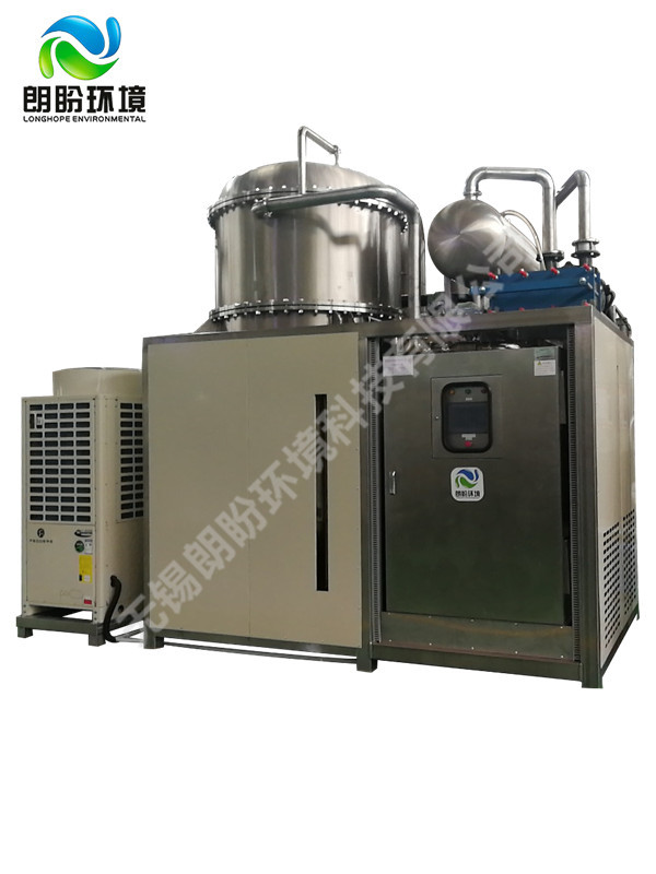 • 低溫?zé)岜谜舭l(fā)器由無錫朗盼環(huán)境科技有限公司主持研發(fā)生產(chǎn),是其全系列工業(yè)廢水處理技術(shù)產(chǎn)品中及其重要的一環(huán)。 V-HP系列真空熱泵蒸發(fā)系統(tǒng),獨特地采用高效的壓縮式熱泵技術(shù),結(jié)合合適的真空運行區(qū)間,使得對于各種工業(yè)廢水的蒸發(fā)濃縮處理具有了廣泛的適應(yīng)性,并且使得處理能耗大幅度的下降,不但讓各種廢水的濃縮減量在技術(shù)上更加合理,更重要的是讓應(yīng)用用戶在經(jīng)濟(jì)上樂于接受。 V-HP系列真空熱泵蒸發(fā)系統(tǒng),標(biāo)準(zhǔn)工況下其主機(jī)能效比達(dá)到9以上,遠(yuǎn)遠(yuǎn)的超過了多效蒸發(fā)器(一效、二效、三效、四效能效比分別為0.9,1.7,2.4,3.0)擴(kuò)容濃度蒸發(fā)器(能效比為4.2)。更為重要的是,由于其采用與以往不同的技術(shù)組織,其全過程運行溫度低于40℃,因而在用于工業(yè)廢水場合并伴有熱敏性物質(zhì)回收的應(yīng)用中顯得非常合適。同時因為該系統(tǒng)構(gòu)成中優(yōu)化了的熱泵系統(tǒng)具有足夠?qū)挿旱墓r適應(yīng)性,在針對廢水液中常常遇到的蒸發(fā)濃縮過程中,沸點升高的門檻有著自適應(yīng)的能力,并且依然能保持其很高的能效比。(例對NaOH 25%的溶液,其主機(jī)能效比依然可達(dá)6.5)